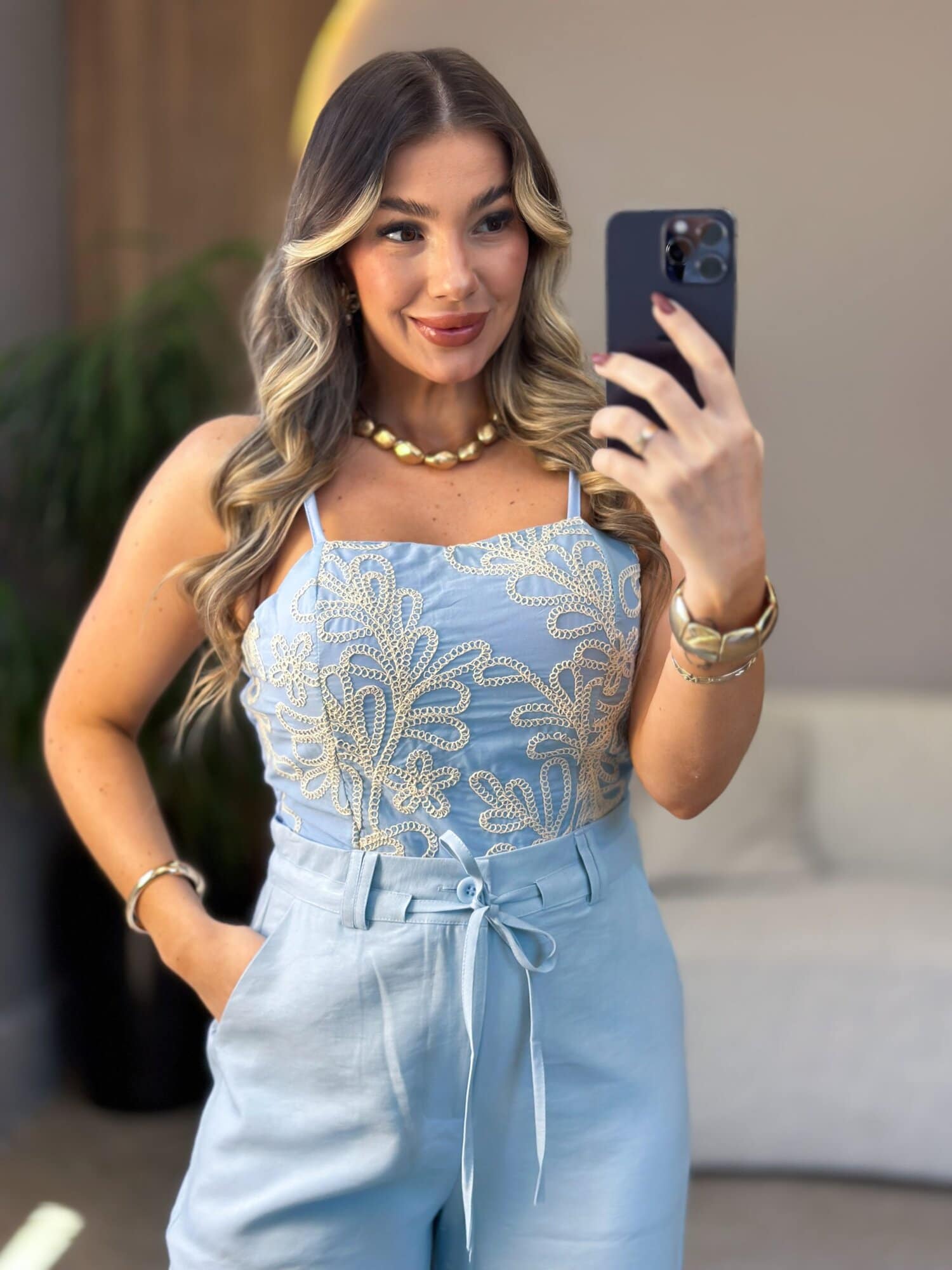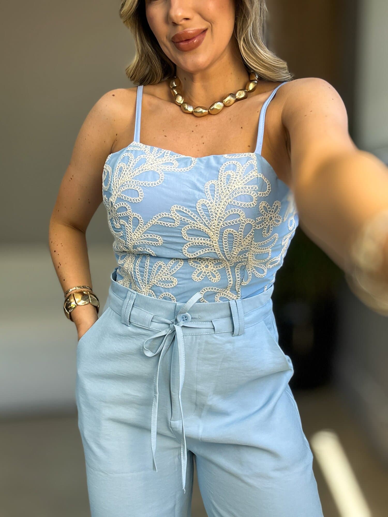 Cropped Flora Azul