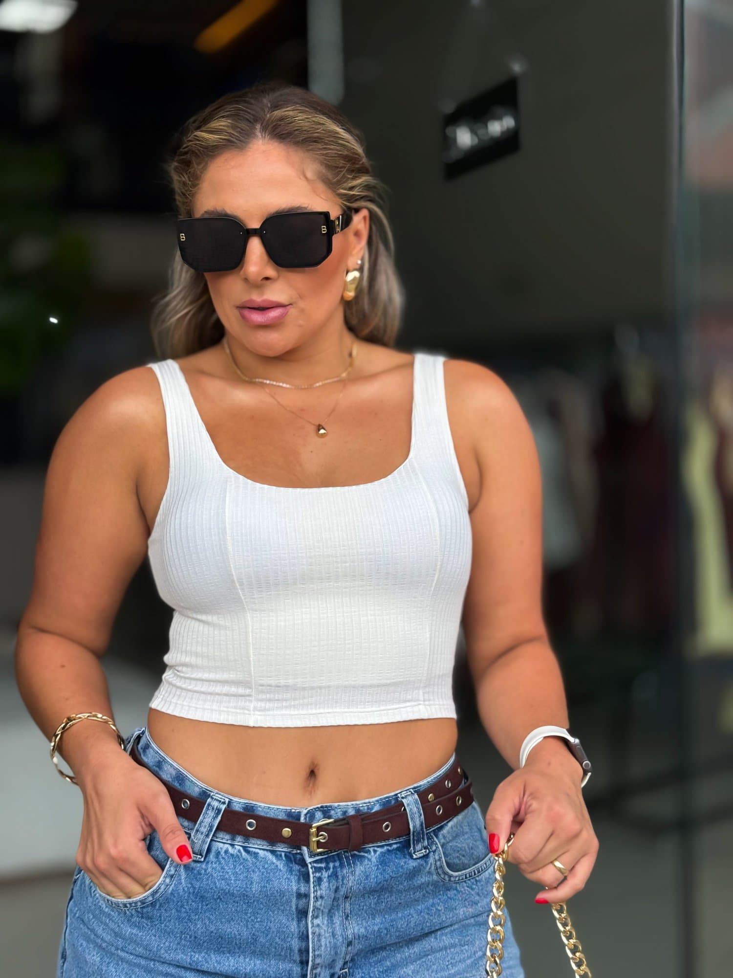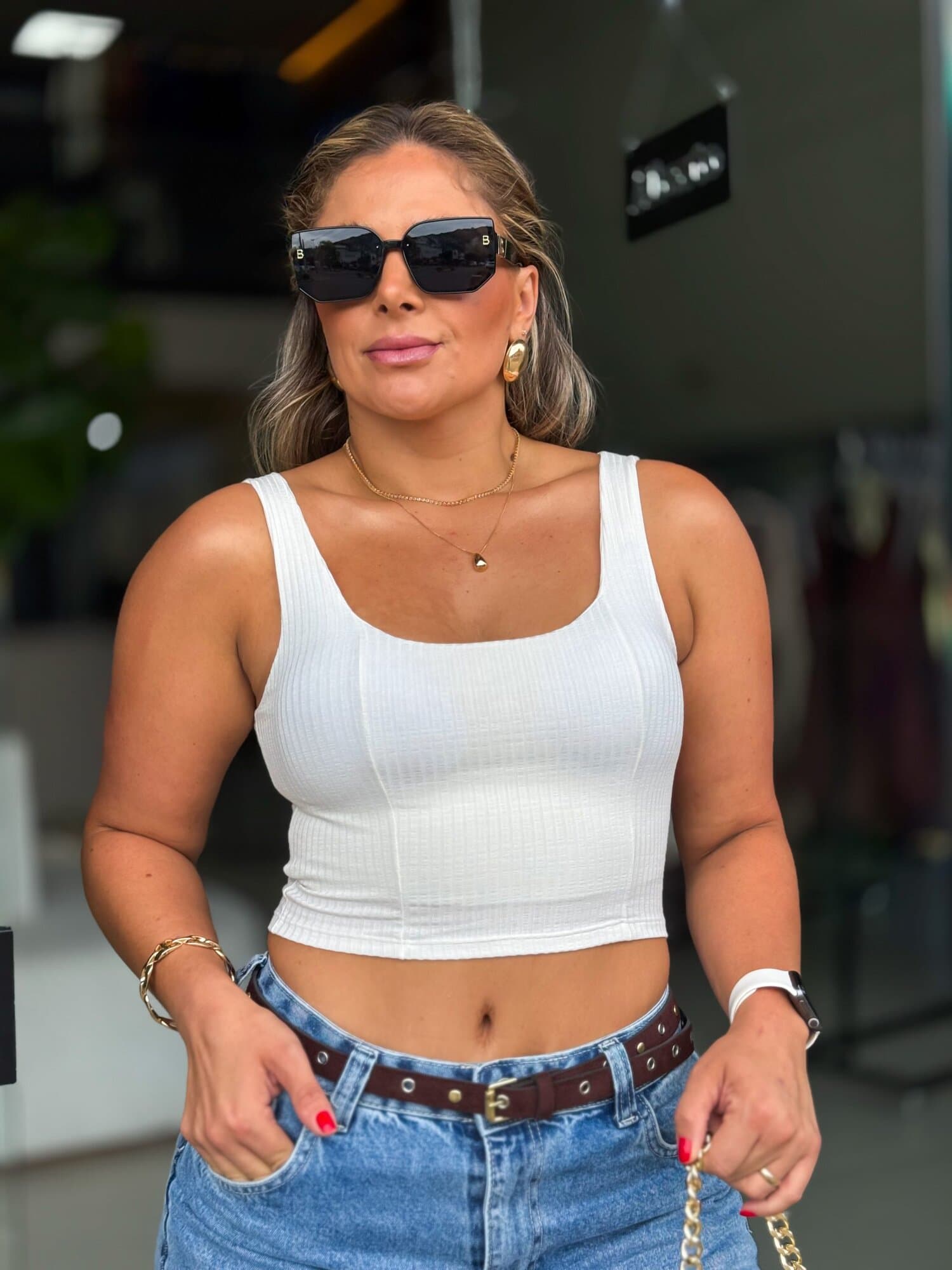 A modelo está vestindo tamanho único